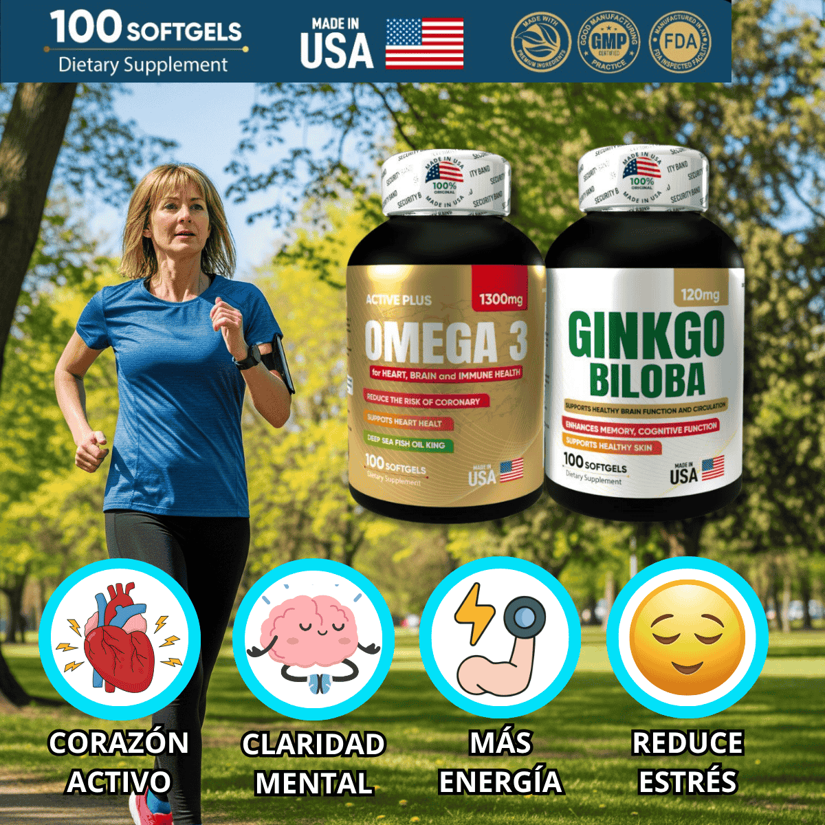 Nuestro dúo Omega 3 + Ginkgo Biloba es importado desde Estados Unidos, elaborado bajo estrictos estándares de calidad internacional.